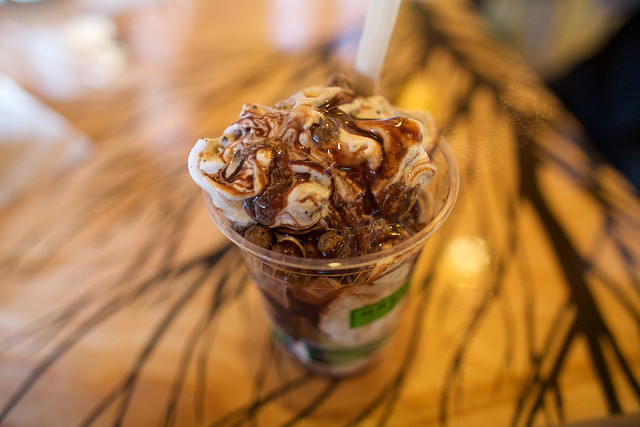 fancy coffee drinks, burritos, froyo, fancy waters, tsoynamis from green.